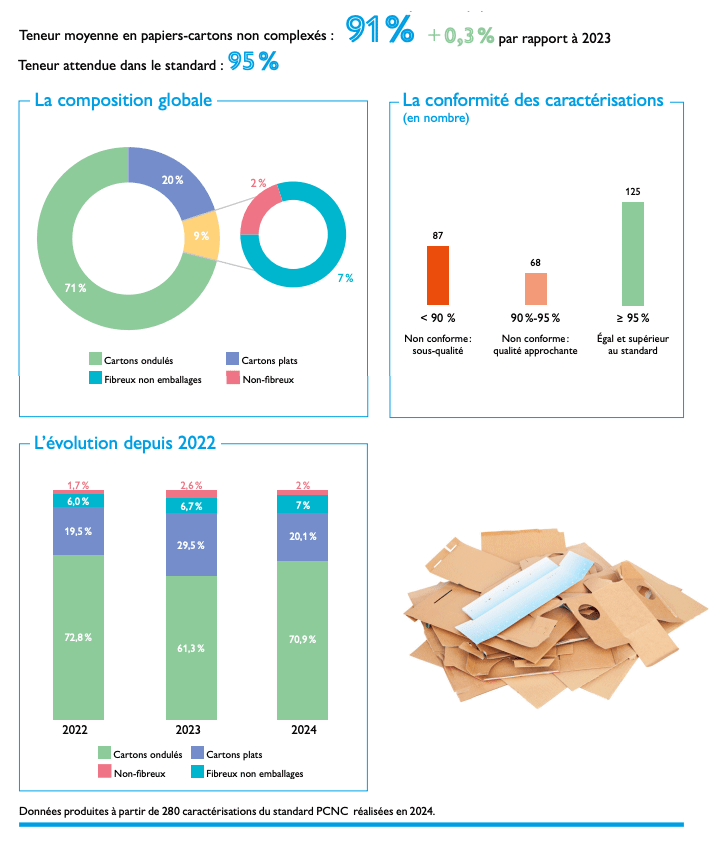 - Bien qu’en légère diminution par rapport à 2023 - qui avait connu une forte hausse - les matières impropres (non fibreux ou non emballages) restent à niveau élevé à 9%.